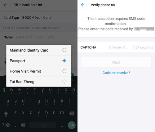 Complete any additional verification steps required by Alipay, such as SMS verification or temporary charges for verification purposes.